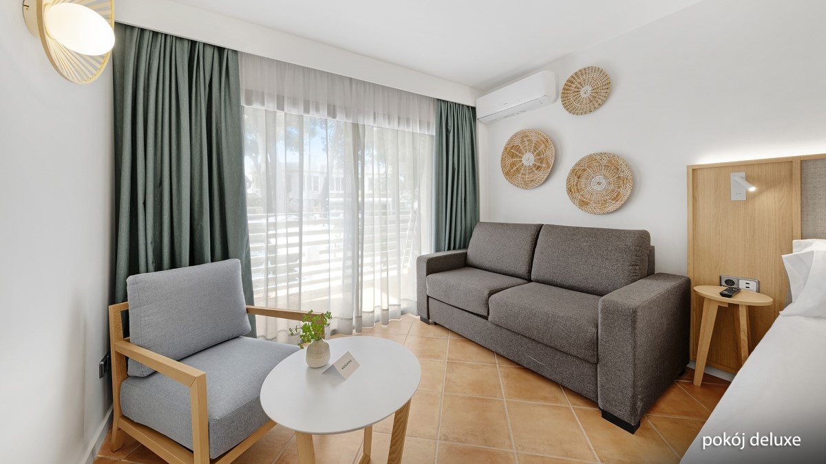 Deluxe: 2 fő részére. (kb. 37 m², nappali és hálószoba ajtóval elválasztva, modern, ízlésesen berendezett, egyénileg szabályozható légkondicionáló, fürdőszoba (esőzuhany, WC, hajszárító), felszereltsége a standard szobáéval megegyezik, extra felszereltség: teljesen felszerelt konyhasarok, hűtőszekrény.