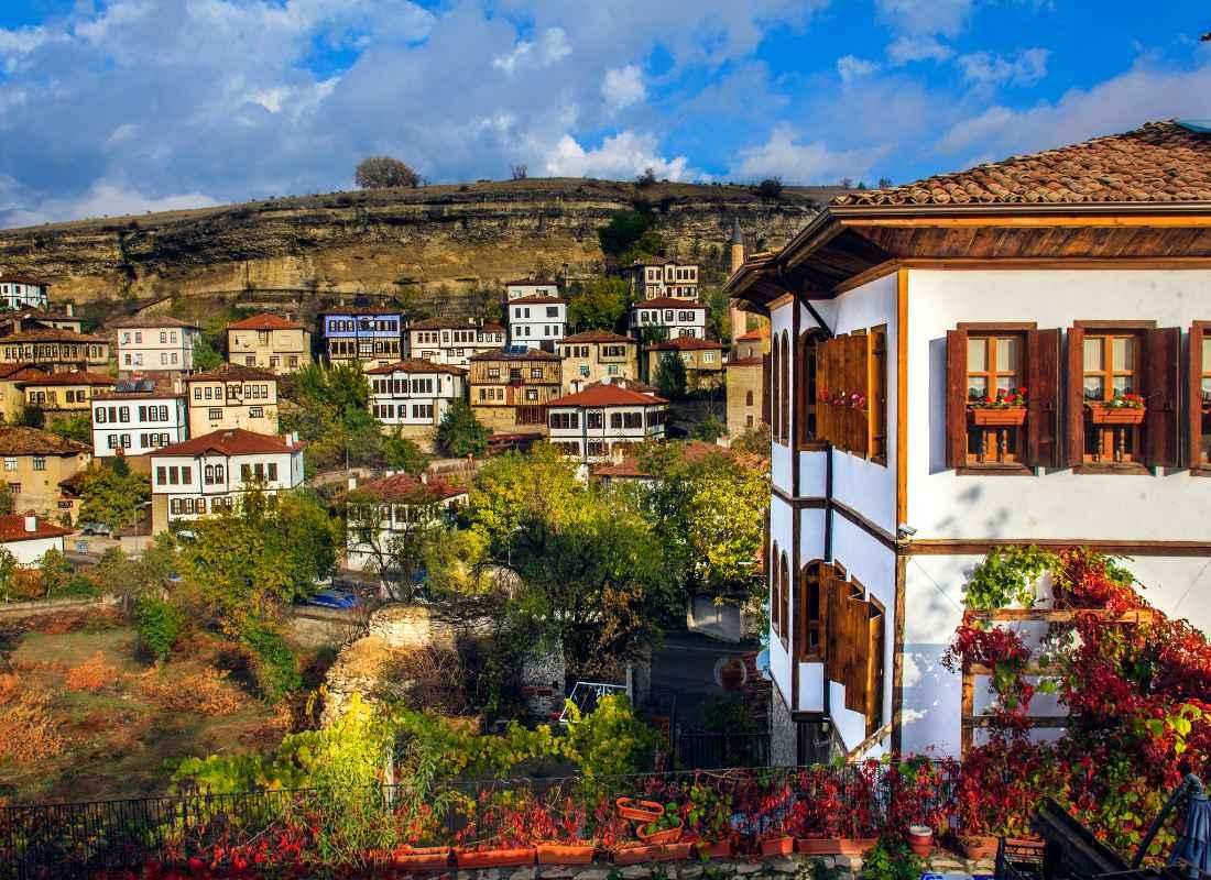 Reggeli után utazásunk megkezdése északra, Karabük tartomány irányába. Menet közben igaz mesék a Szeldzsuk- illetve Oszmán birodalom idején működő nemzetközi kereskedelmi utakról, a Selyemút anatóliai hálózatáról, a máig álló híres karavánszerájokról. (A 230 km-es buszozás során pihenőt tartunk egy mai, modern „karavánszerájban” is.) Látogatás Törökország legépebben megmaradt, UNESCO világörökségi védelem alatt álló, oszmán stílusú karavánközpontjában. A 47.000 lakosú város 1.008 darab védett épülettel rendelkezik, belső karavánszerájokkal, vásártérrel, 5 törökfürdővel, 8 közkúttal, 25 mecsettel. Nagymecsete 1322-ben épült, a Bağlar, vagyis pincehegy-negyede állítólag az ókori római idők óta működik. Az óvárosba érkezés előtt látogatás a Tokatli kanyon kilátóteraszán, fotószünettel. A „Sáfránypolisz”-ba érve közös panoráma-fotózás a Hidirlik-hegyről, majd ismerkedő séta a mesés óvárosban.